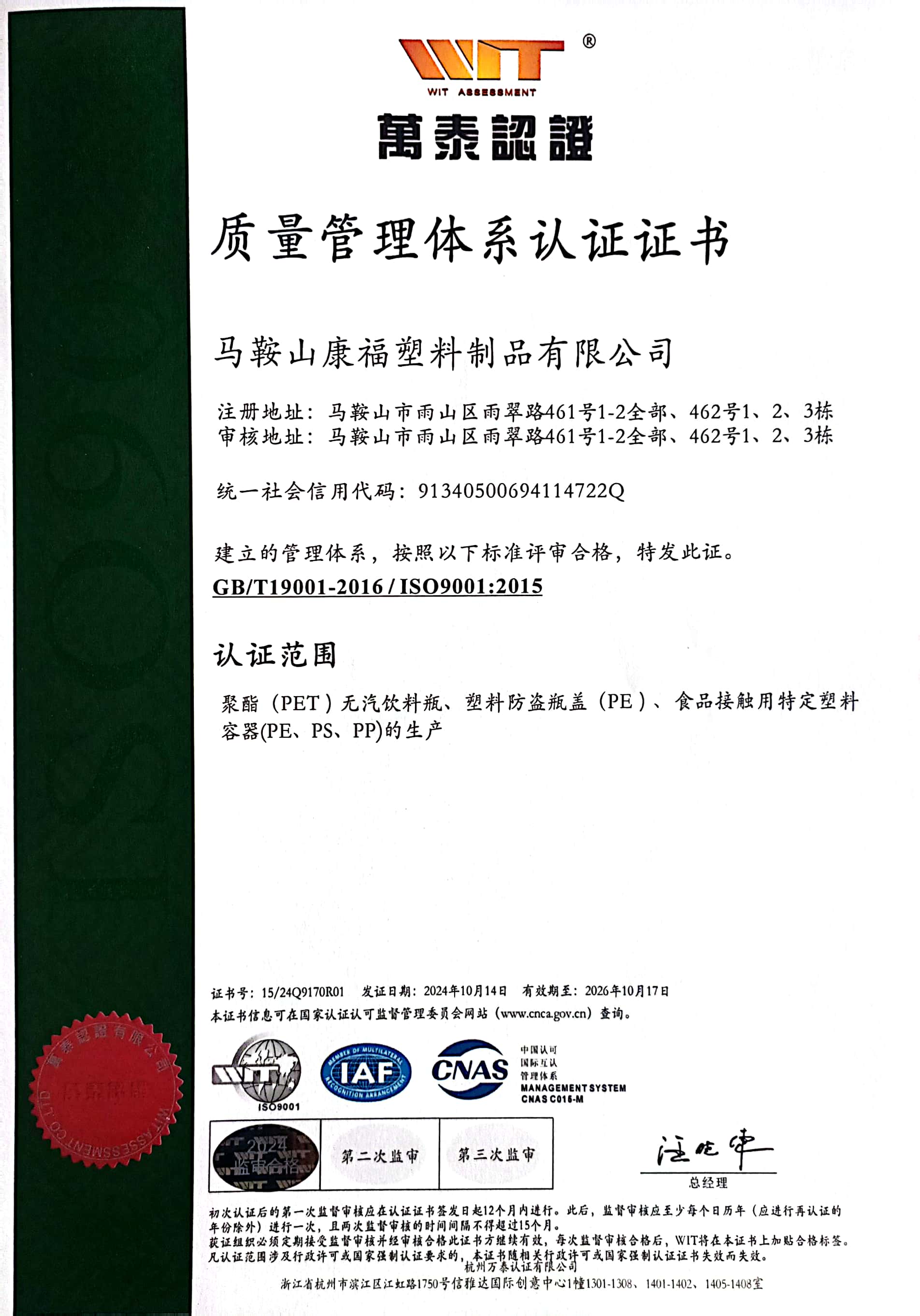 質(zhì)量管理體系認(rèn)證證書(shū)